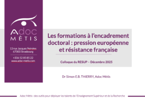 Notre communication, intitulée « Les formations à l’encadrement doctoral : pression européenne et résistance française » a été acceptée pour le congrès 2025 du RESUP, dont le titre est « Au-delà du national. Globalisation, circulations et comparaisons dans l’enseignement supérieur et la recherche ». Le colloque aura lieu du 17 au 19 décembre 2025.